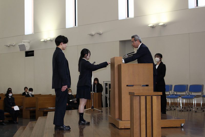幹事任命 クラス幹事の読み上げ後、学年幹事に委嘱状が手渡されました